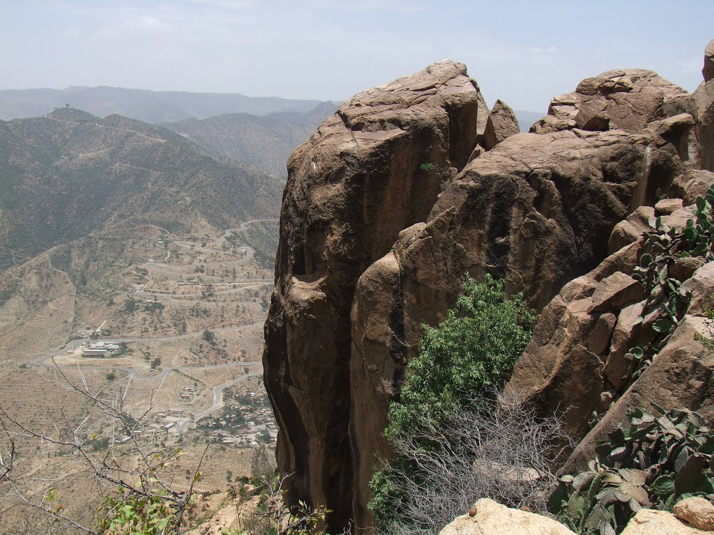 His teacher, Tatyos, is also the subject of legend. During his evangelical journey eastwards, he asked a captain to take him across the Red Sea. The captain asked for money, but Tatyos therefore resorted to sitting on his cloak, which bore him up like a magic carpet and flew him across the seas and deserts to Armenia. He supposedly launched himself from a rocky ledge, north of the monastery, called Adey Kbetsni, ‘Goodbye My Mother‘. It is claimed that the gnarled tree which stands on the wind-blown rock today is one that bowed down to the pious monk as he prepared to launch himself into the skies. Behind the outcrop, Adey Kbetsni, is a tomb dedicated to Abune Yohannes, an abbot of the monastery who lived five hundred years ago.