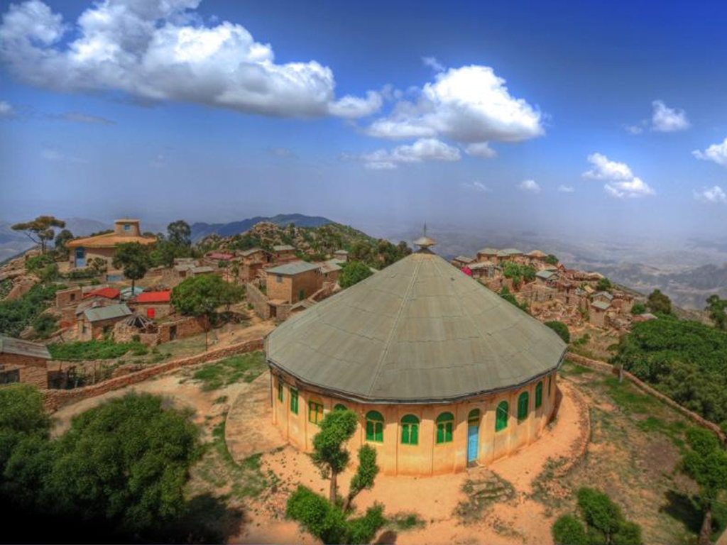 The monastery is a collection of pink granite buildings cut into the sides of huge smooth rocks. The oldest building is the church built during the lifetime of monk Filipos, on top of the roof is an intricate Orthodox crucifix and circle of bells, which jangle in the breeze. The walls of the church are painted yellow with decorated wooden shutters and doors. For centuries it has survived as a center of Christian prayer and learning in spite of invading armies and religious conflict from that of Somali hordes of Ahmed Gragn to the Derg.