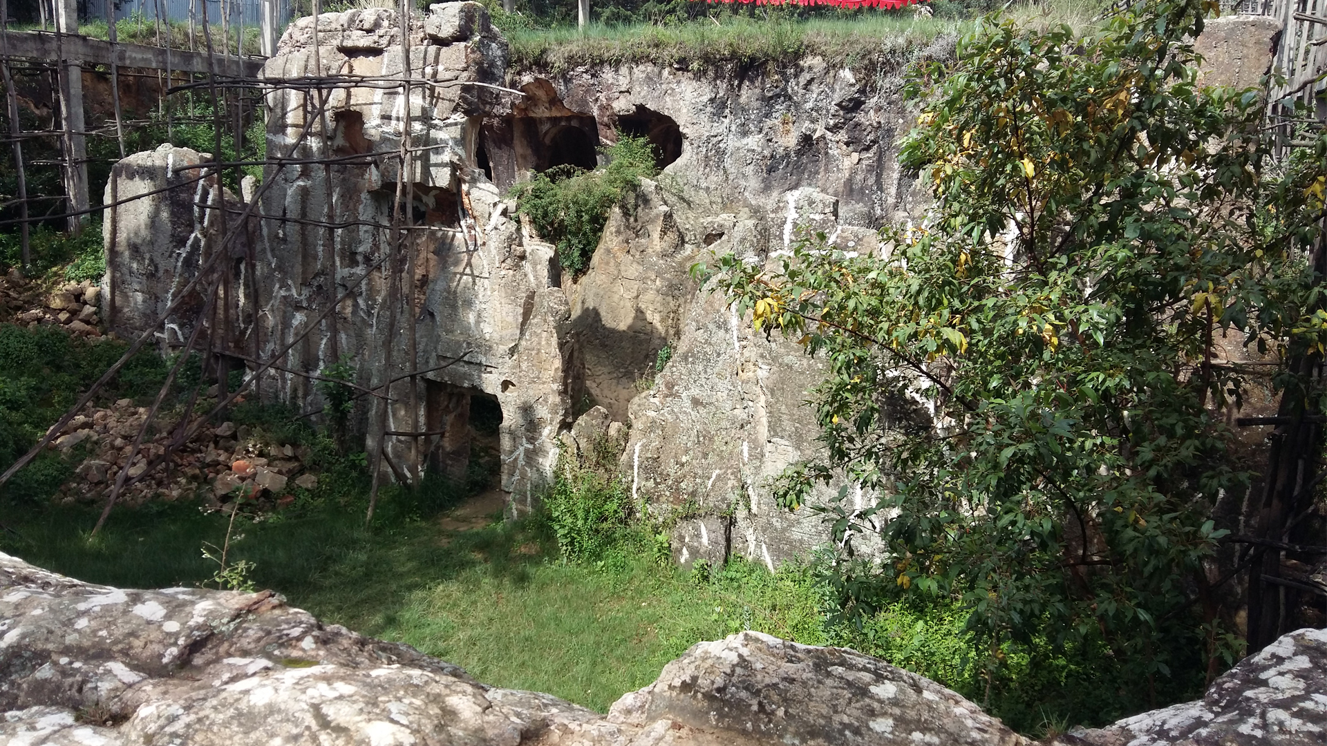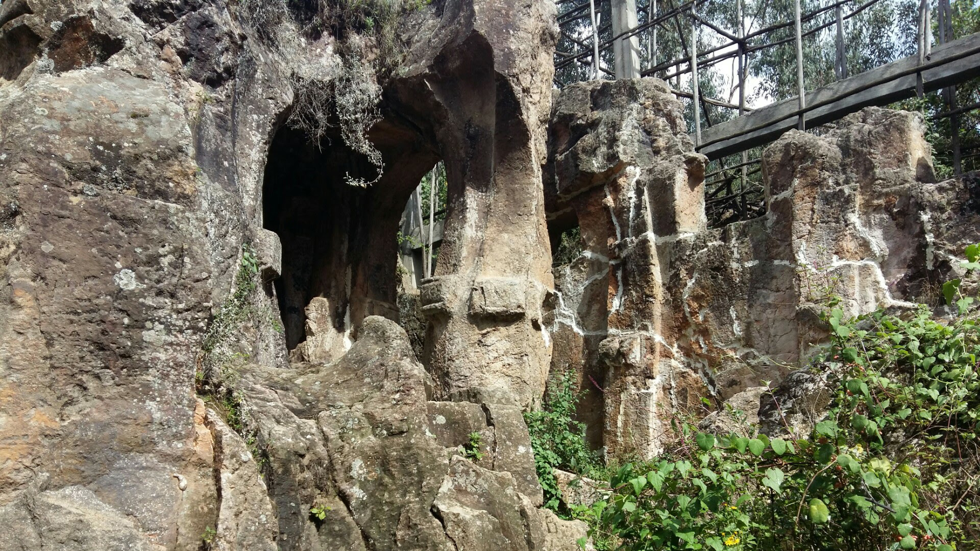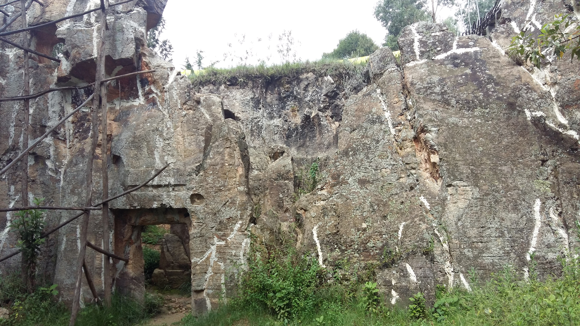 Washa Michael is such one cut entirely of a single rock on the top hills of Mount Yeka, Addis Ababa. It is now a ruined old palace and church.